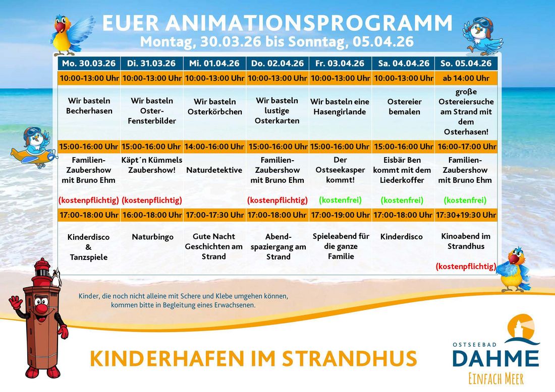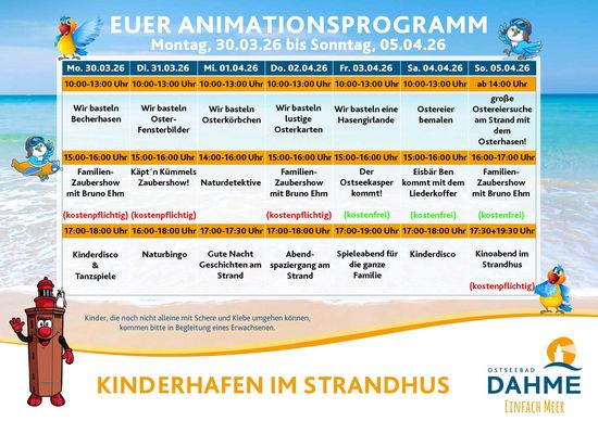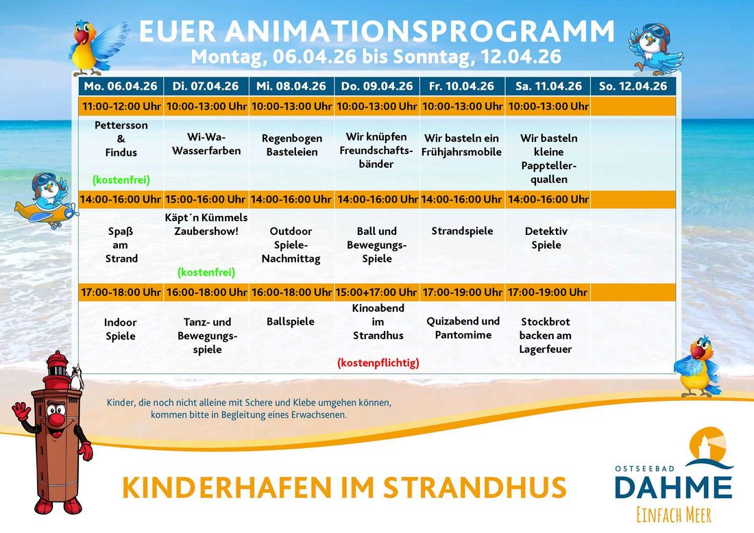 Dann ist unser Animationsteam bis zum 11.04.2026 für euch da, bis dahin ist unser Kinderhafen vorerst in der Pause.