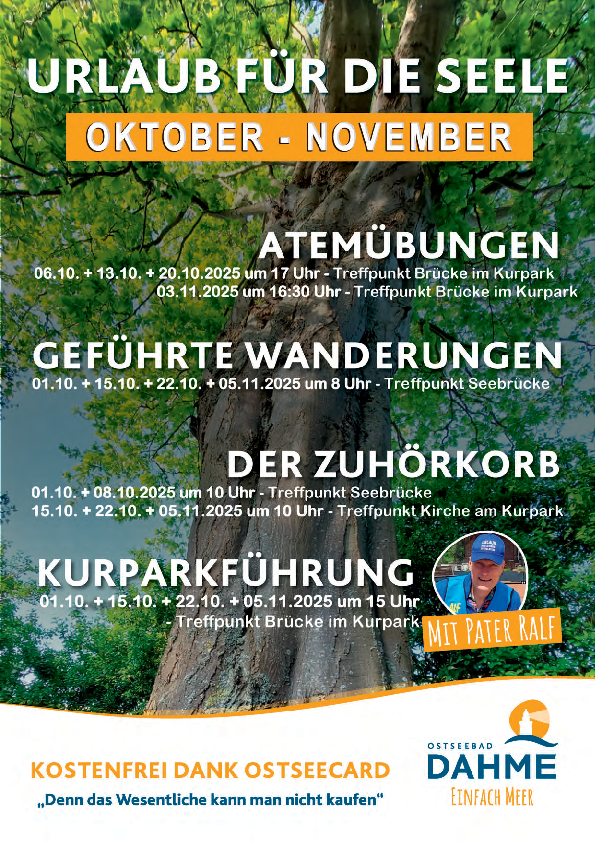 Einfach meer! Direkt an der Lübecker Bucht liegt das Ostseebad Dahme. Lassen Sie sich von unserem fabelhaften Strand verzaubern und genießen Sie den unvergleichlichen Blick aufs offene Meer. Egal ob allein, zu zweit oder mit der ganzen Familie – bei uns gibt es das passende Angebot für Groß und Klein. Wir freuen uns auf Sie!